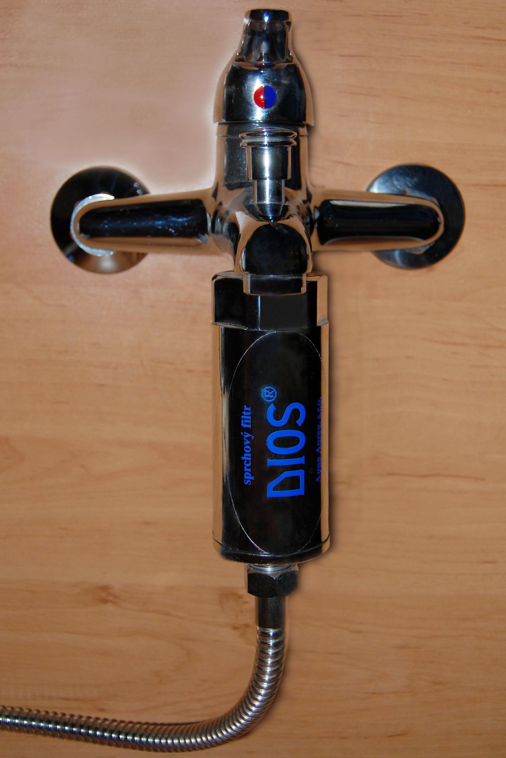 Sprchový filtr DIOS slouží k odstraňování chlóru, chloraminu, sirovodíku a dalších škodlivých látek ze studené i teplé vody namontováním na výstupní šroubení vodovodní baterie (armatury)