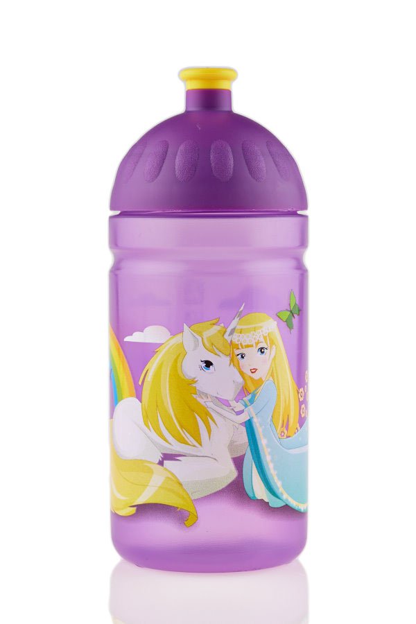 ZDRAVÁ LAHEV Princezna 0,5l je nejmenší z objemových řad Zdravých lahví. Líbivý design ocení hlavně děti a malí školáci. Ale třeba i právě Vy, proti gustu žádný dišputát. Design lahve Princezna tvoří primárně princezna s poníkem, kterému nechybí pořádná hříva a oháňka a také krásná pestrobarevná duha, to vše na sytě fialovém podkladě těla lahve, která je částečně transparentní (průhledná). Celek dotváří tmavě fialové víčko a žlutá zátka. Koupí náhradních dílů můžete kombinovat barvy víčka a zátky. Na láhev je možné dokoupit také FreeWater krytku různých barev pro hygienické krytí ventilu láhve.