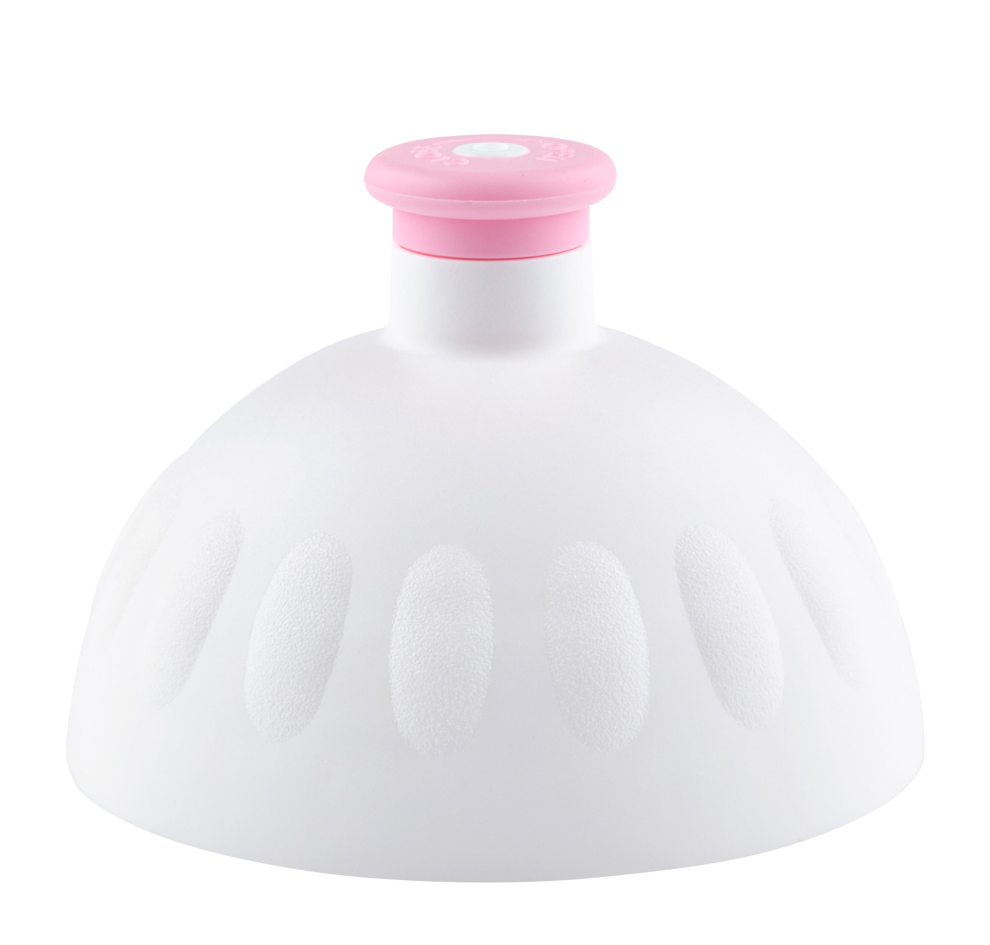 NÁHRADNÍ VÍČKO bílé, růžová zátka. Víčka jsou dostupná v různých barevných provedeních pro případ náhodného poškození víčka. Komplet obsahuje víčko, zátku a těsnící „O“ kroužek.