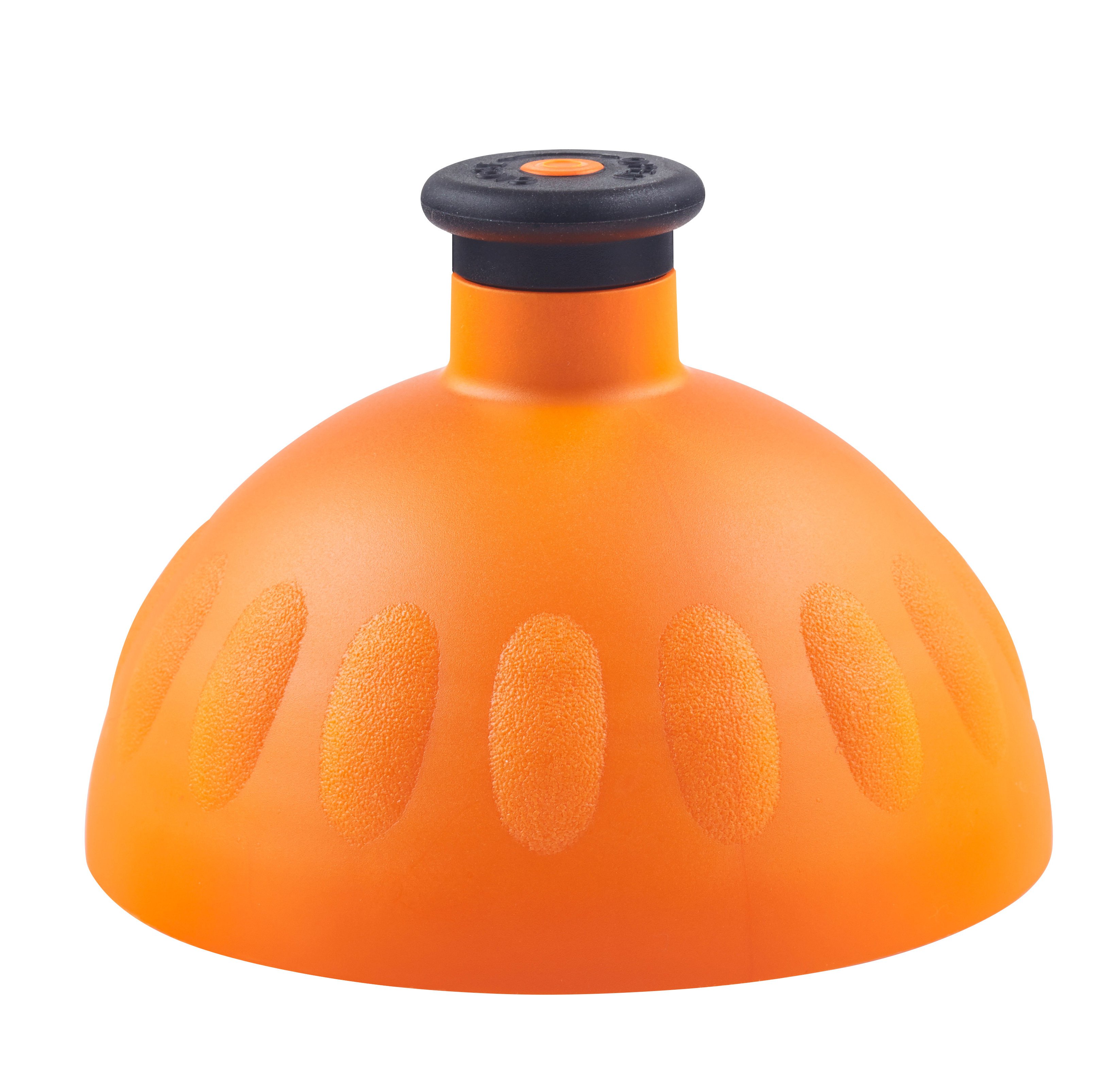 NÁHRADNÍ VÍČKO oranžové, černá zátka. Víčka jsou dostupná v různých barevných provedeních pro případ náhodného poškození víčka. Komplet obsahuje víčko, zátku a těsnící „O“ kroužek.