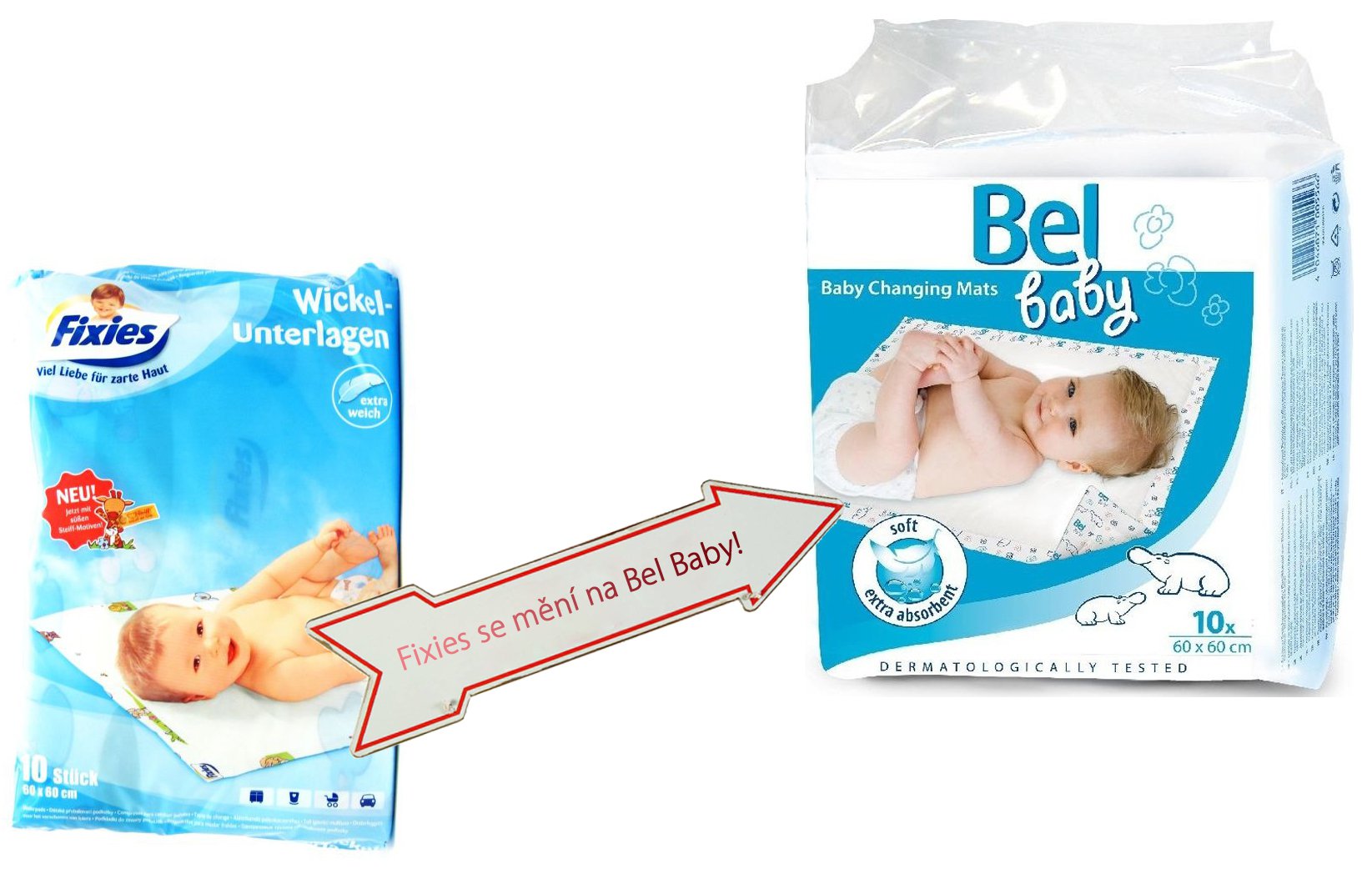 Přebalovací podložky Bel Baby nahrazují osvědčené a oblíbené podložky Fixies. Dle vyjádření výrobce (Hartmann - Rico) jsou nové podložky stejně kvalitní. Mají pro dětskou pokožku ještě jemnější povrch a jsou potištěny novými veselými obrázky s motivem hrocha. Změna názvu na Bel Baby je z důvodu sjednocení produktové řady pro péči o dítě a maminky, zahrnující např. prsní vložky, přebalovací podložky, vlhčené ubrousky, vatové tyčinky, apod.