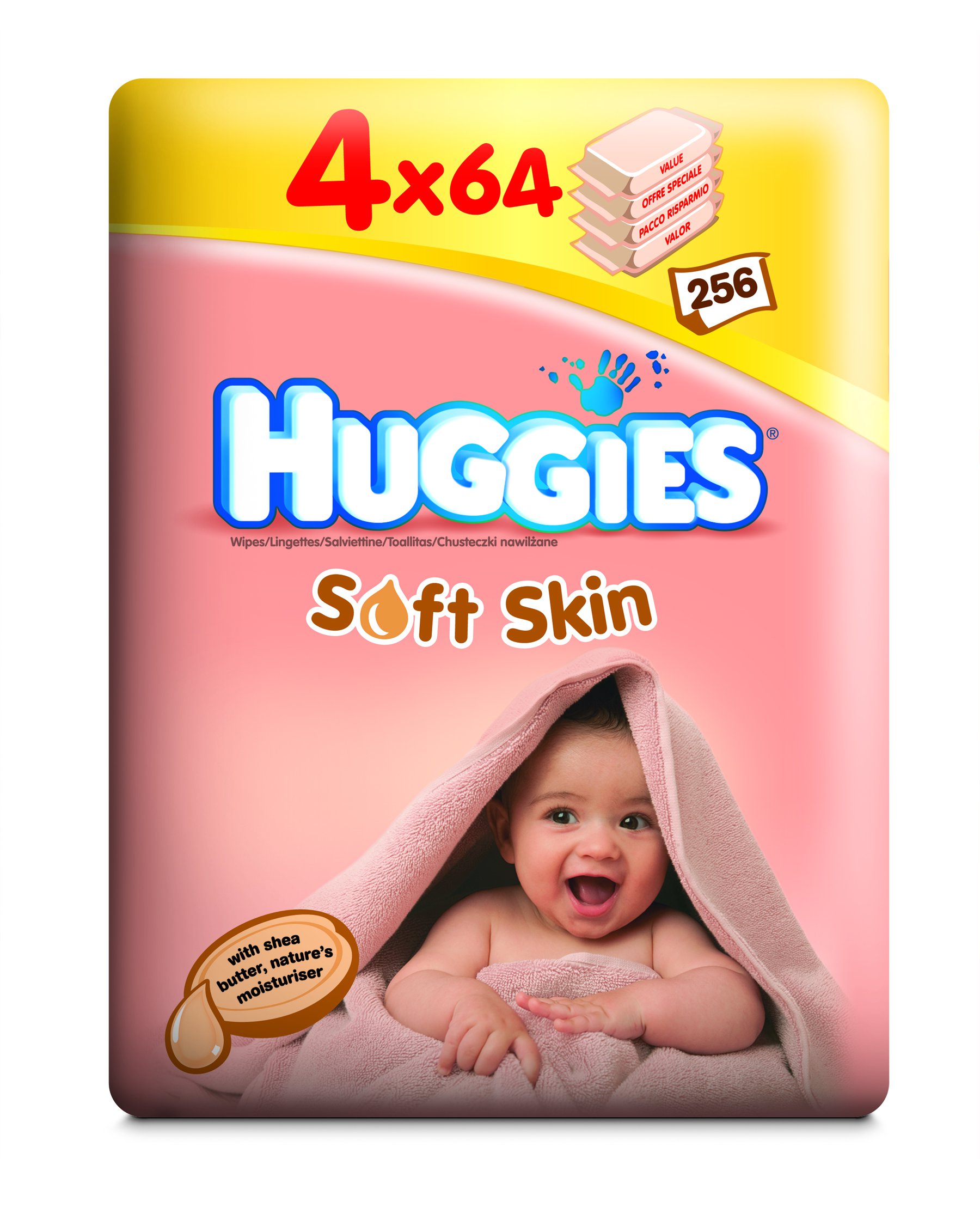 Huggies vlhčené ubrousky Soft Skin 4x64ks - Quatro Pack