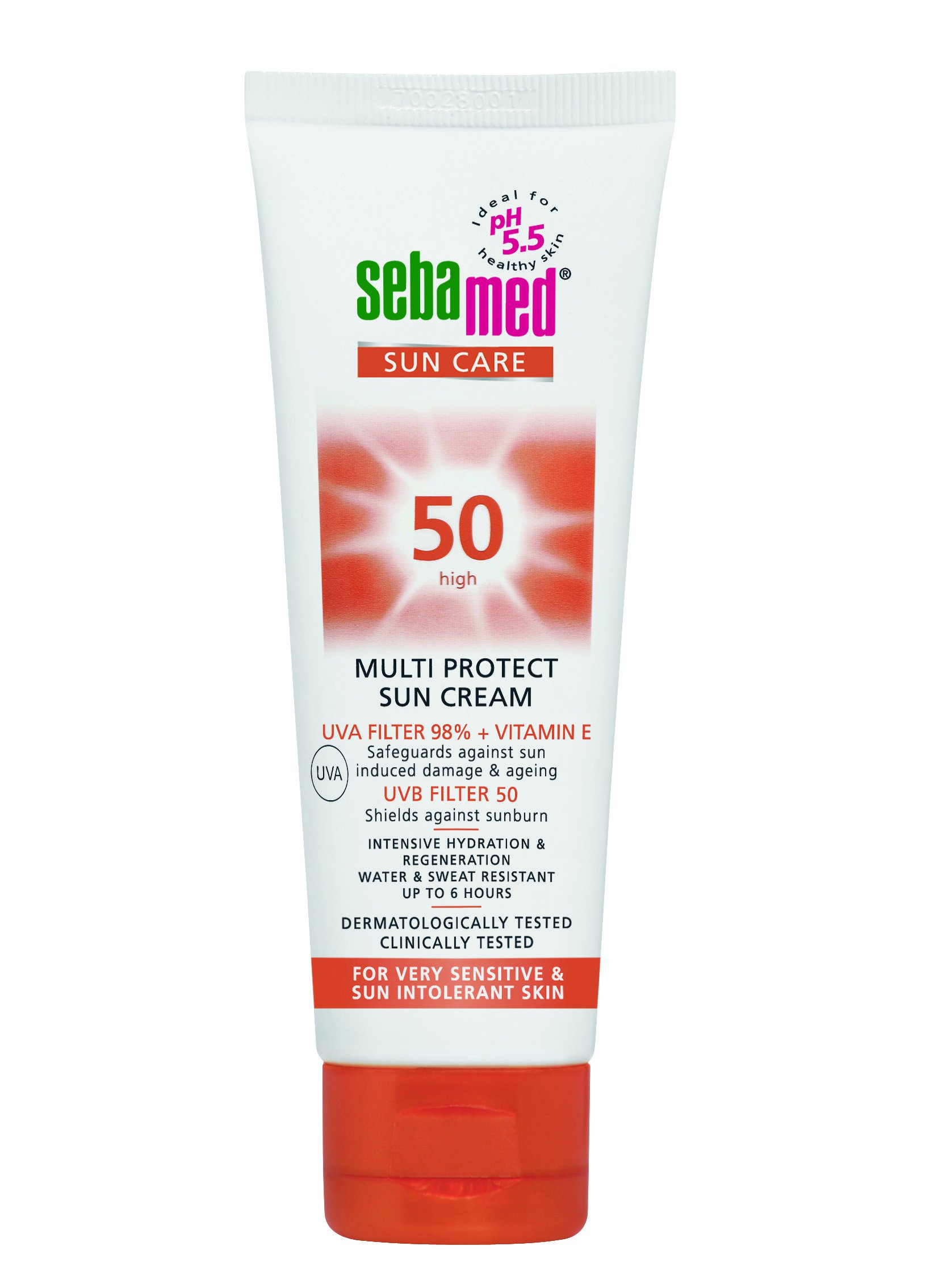 Opalovací krém Sebamed obsahuje vysoce efektivní sluneční filtry UV-B i UV-A (98% ochrana před UV-A). V kombinaci s mikro-pigmenty účinně chrání před spálením a podráždění kůže. Vitamín E a provitamín B5 zajišťují ochranu a regeneraci buněk. Zvlhčující komplex brání dehydrataci kůže. Je odolný proti vodě, potu i písku po dobu 6-ti hodin. Neobsahuje alkohol, barviva, parafín, paraben, sloučeniny PEG a PABA ester a akrylamid.