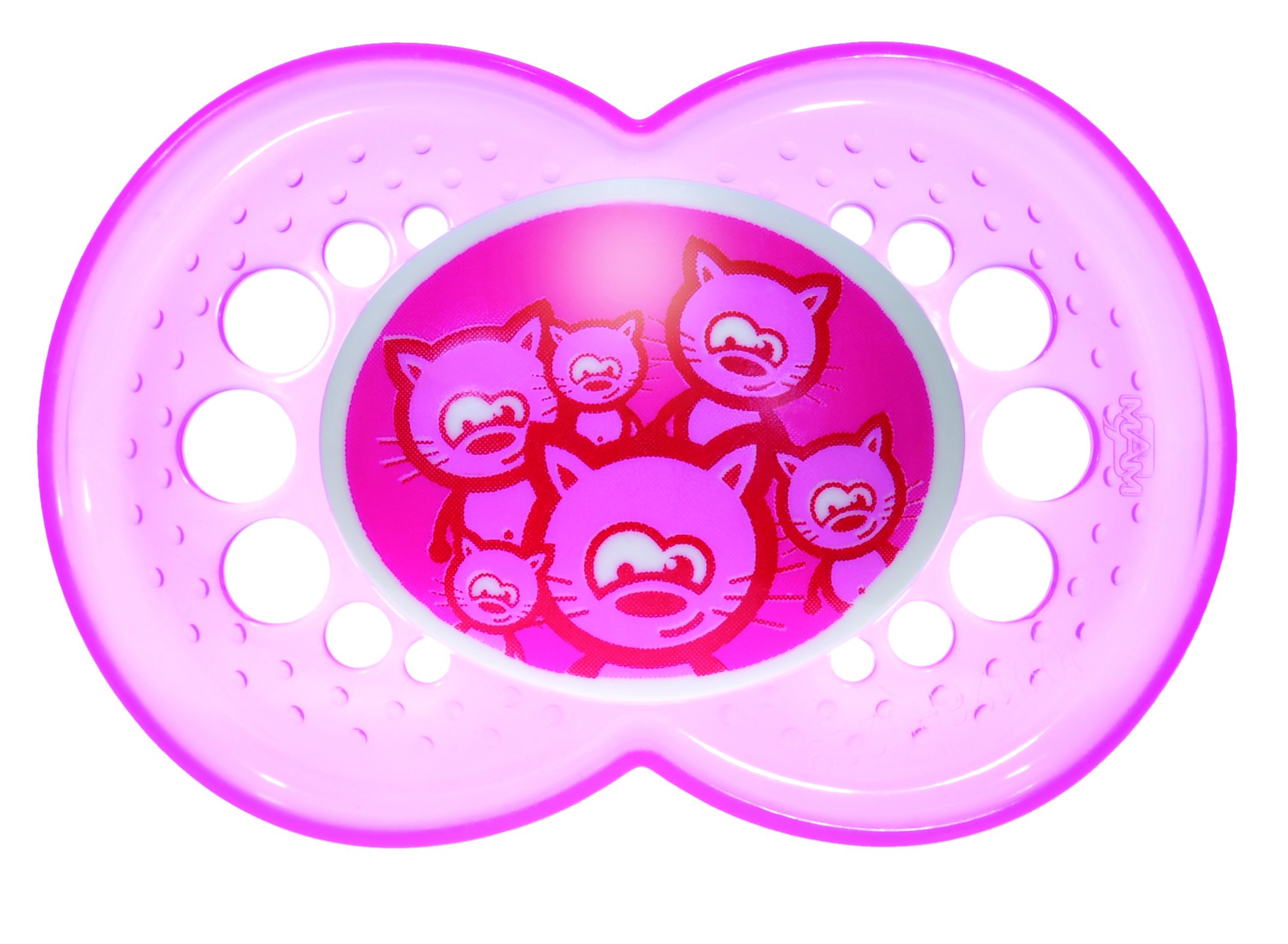 Mam Dudlík Original má zakřivený štítek, lépe tak drží dětem v ústech. Povrch uvnitř štítku a speciální otvory v něm, umožňují pokožce po celou dobu dýchat, ta pak není nikdy podrážděná. Správný růst dětských zoubků podporuje symetrická savička. Balení obsahuje krytku savičky. Obrázek je pouze ilustrativní. Dekor středu dudlíku nejsme schopni ovlivnit, vzhledem k tomu, že MAM produkuje každého čvrt roku stovky nových dekorů dudlíků.