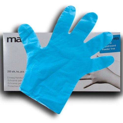 keywords => "Rukavice, TPE, jednorázové, pracovní, voděodolné, ochranné, potraviny, nesterilní, modré rukavice" (105)