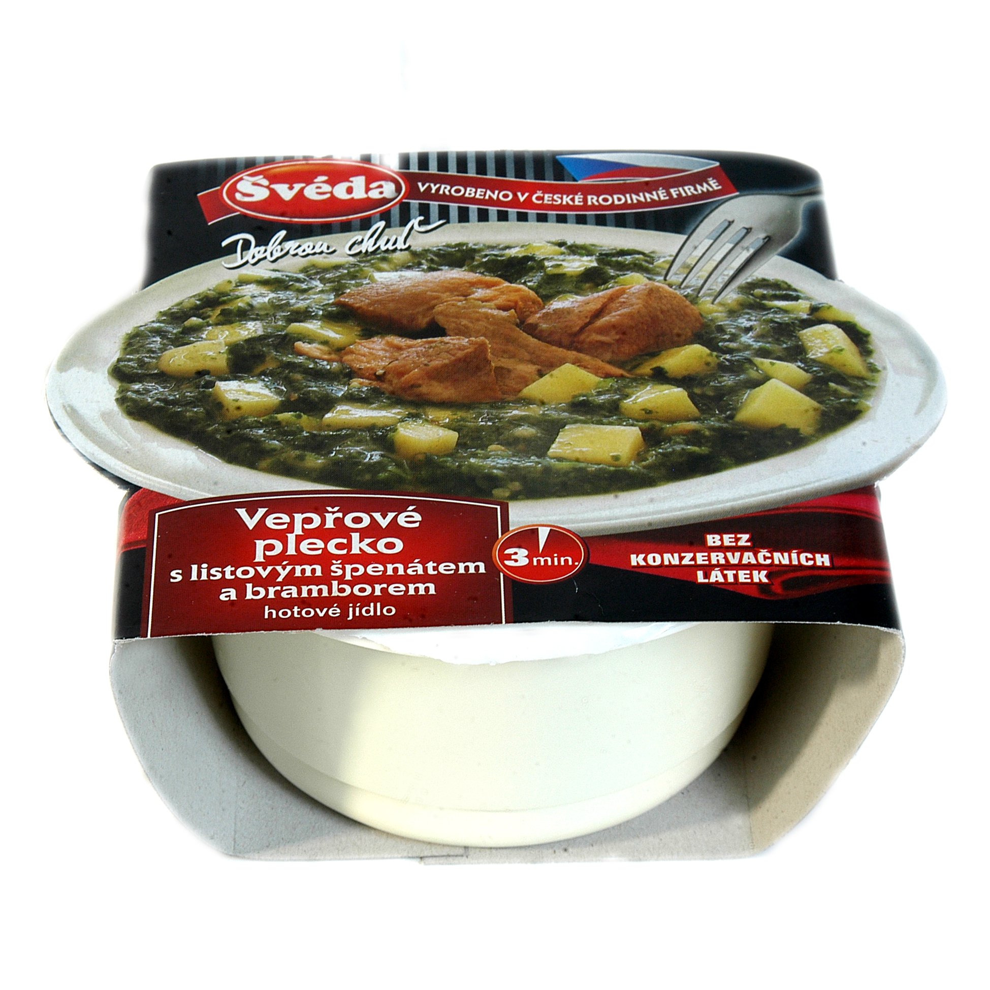 Švéda Vepřové plecko s listovým špenátem a bramborem hotové jídlo 330 g plast