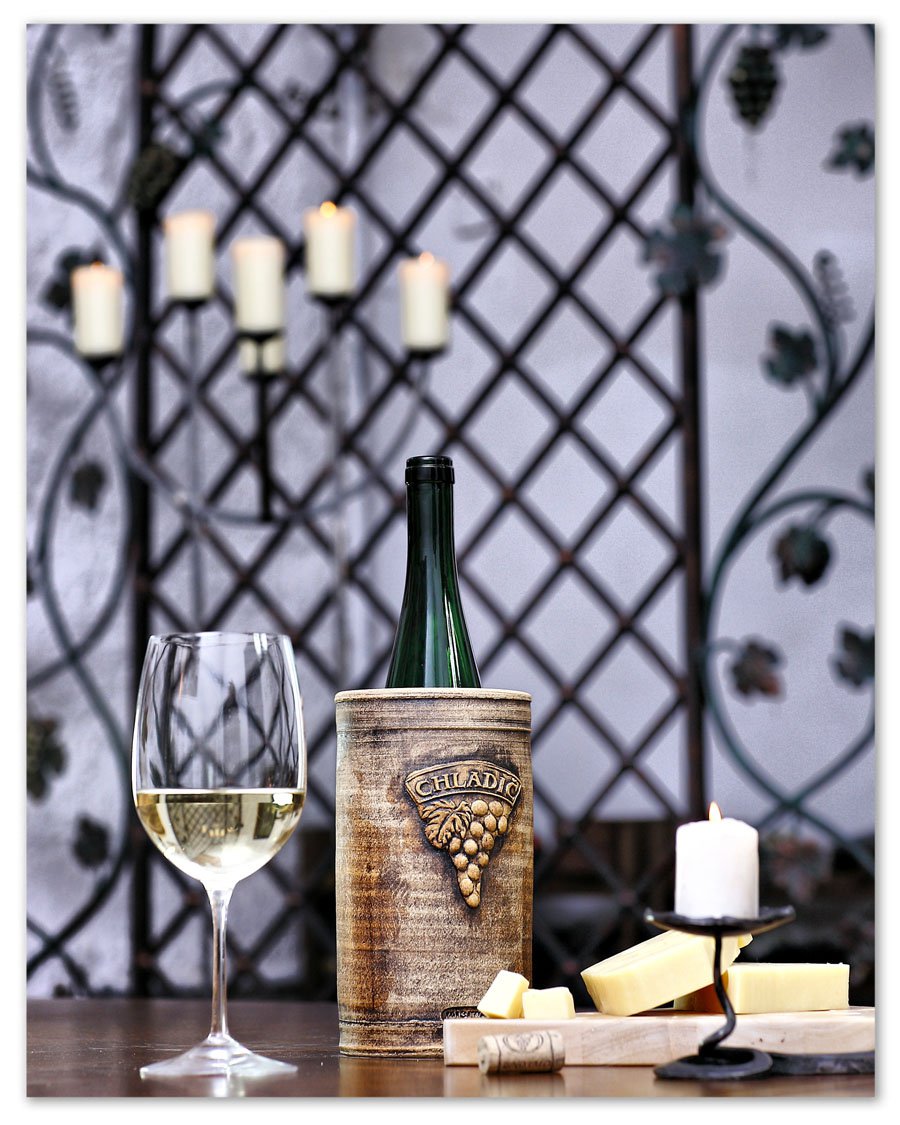 Výroba chladiče trvá více jak 100 hodin, z toho připadají zhruba 2 hodiny čisté ruční práce na jeden chladič, zbytek pak na technologické procesy jako pálení a chladnutí. Chladič, který jste si zakoupili je vyráběn v České Republice keramickým mistrem, výhradně ručně bez použití jediného stroje a ve velmi omezených sériích. Každý kus je originál a neexistují dva stejné chladiče. Jako materiál je používána světlá šamotová kamenina s ostřivem do velikosti zrna 1 mm. Chladiče jsou točené z volné ruky na hrnčířském kruhu, pak je na ně přilepena pečeť s nápisem chladič a hrozen, vše ručně vyškrábané do sádrového razítka.
