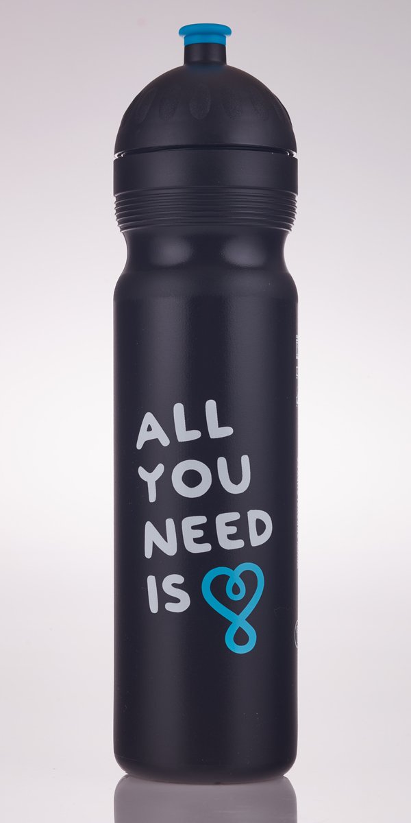 ZDRAVÁ LAHEV UAX All you need - černá 1,0l je největší velikost z objemových řad Zdravých lahví. Motivy ZDRAVÁ LAHEV UAX vznikly ve spolupráci s firmou UAX působící na českém trhu již 25 let. Autorem veselých a pohodových motivů s výrazným rukopisem je výtvarník Radek Leskovjan, majitel firmy UAX. Lahve jsou vyrobeny ve svítivých fluo barvách. Design lahve UAX All you need - černá tvoří bílý nápis "ALL YOU NEED IS" a modré srdce z loga zdravých lahví, to vše na černém těle lahve.