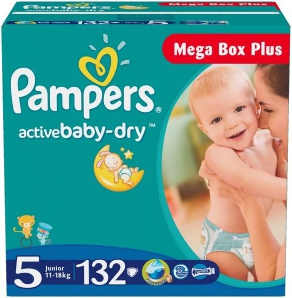 - Výhodné spotřebitelské balení (Mega Box Plus) - 132 ks plenek Pampers Active Baby-Dry 5