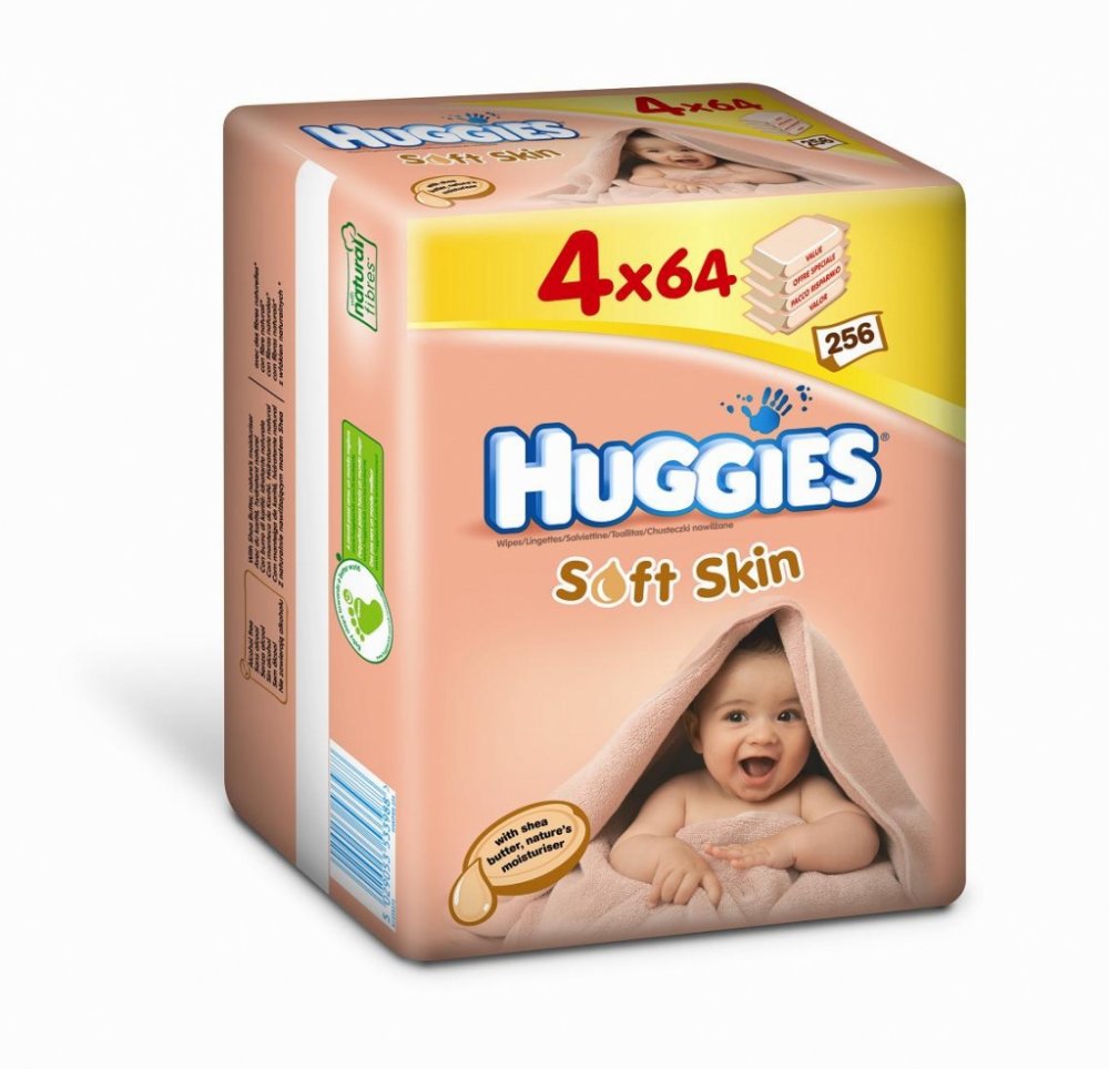 Huggies vlhčené ubrousky Soft Skin 4x64ks - Quatro Pack