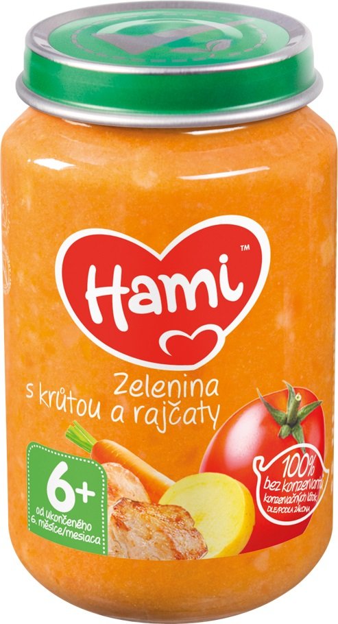 Ve správné výživě dětí je důležitá nejen kvalita a skladba stravy, ale především správné stravovací návyky, které vidí u Vás, u rodiny. Ne všechna jídla, které jíme my, jsou pro tak malého človíčka vhodná. Vyzkoušejte příkrmy Hami od ukončeného 12. měsíce, které představují 12 oblíbených receptur české a světové kuchyně. Jsou vhodným přechodem na domácí stravu a zároveň představují kompletní jídlo s vyváženým obsahem zeleniny a masa a dostatečným množstvím sacharidů, tedy energie na jedno hlavní jídlo denně.
